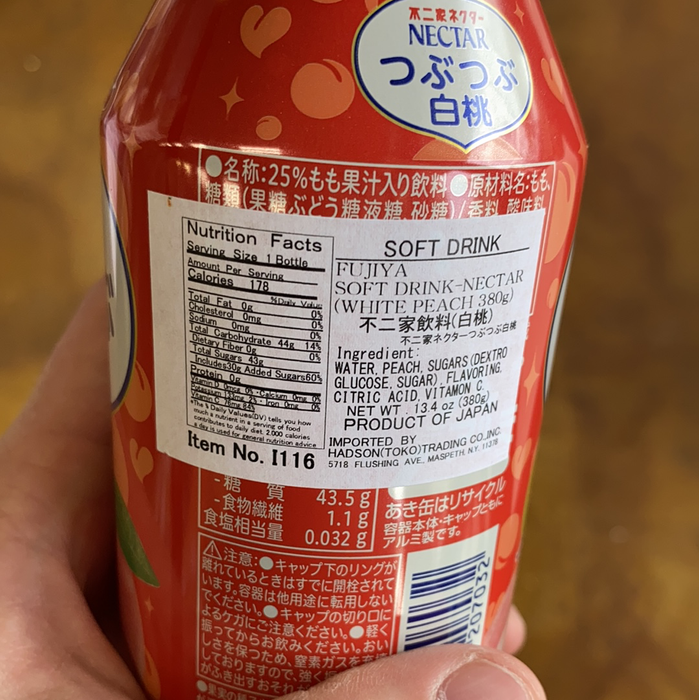 Click to expand Tap to zoom Fujiya Nectar Peach, 13.4oz Save Liquid error (snippets/product-badge line 32): Computation results in '-Infinity'% $3.49 1 2 3 4 5 6 7 8 9 10+ Quantity Quantity Add Item Fujiya Nectar Peach, 13.4oz