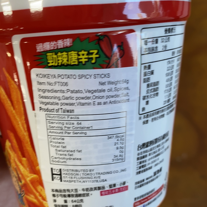 Click to expand Tap to zoom Koikeya Potato Spicy Sticks, 64g Sold out $3.49 1 2 3 4 5 6 7 8 9 10+ Quantity Quantity Sold out Koikeya Potato Spicy Sticks, 64g
